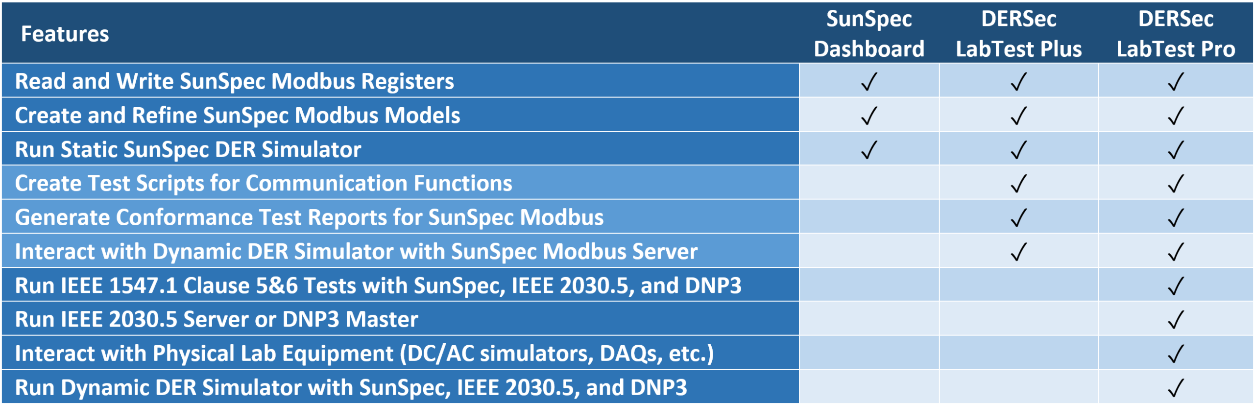 LabTest includes automation testing solutions for the IEEE 1547.1-2020/UL 1741 SB protocols, including tests for Voltage Trip and Voltage Ride-Through, Voltage Disturbances in Continuous Region, Frequency Trip and Frequency Ride-Through, Voltage Phase-Angle Change Ride-Through, Enter Service, Limit Active Power, Constant Power Factor Mode, Voltage-Reactive Power Mode, Active Power-Reactive Power Mode, Constant Reactive Power Mode, Voltage-Active Power Mode, Frequency-Droop Capability, and interoperability tests, Nameplate, Configuration, and Monitoring.