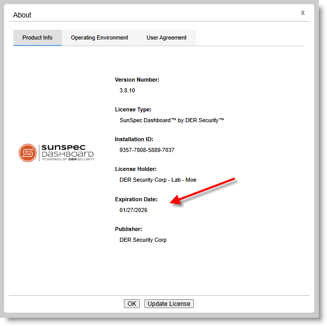 Help → Aboutto get your 16-digit ID. Email support@sunspec.org with this information and the support team will email back the license for this computer.